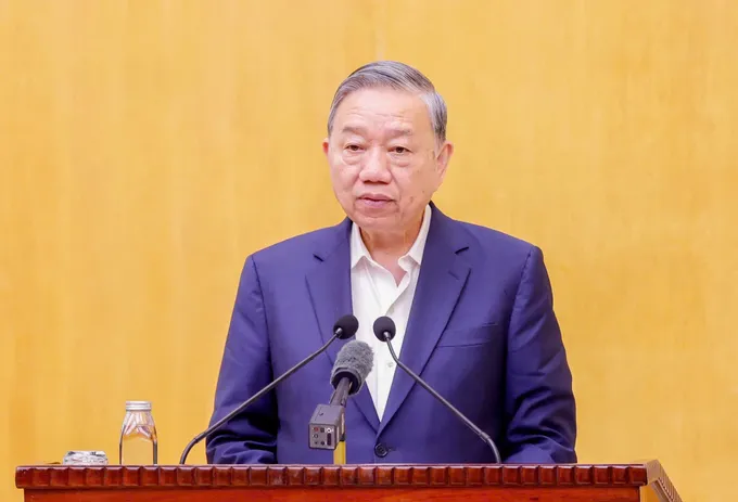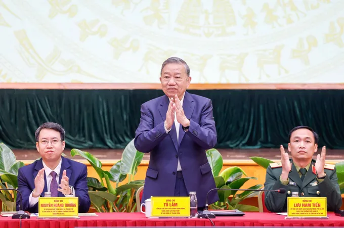 Tổng Bí thư Tô Lâm phát biểu tại hội nghị tiếp xúc cử tri. Ảnh: VIẾT CHUNG