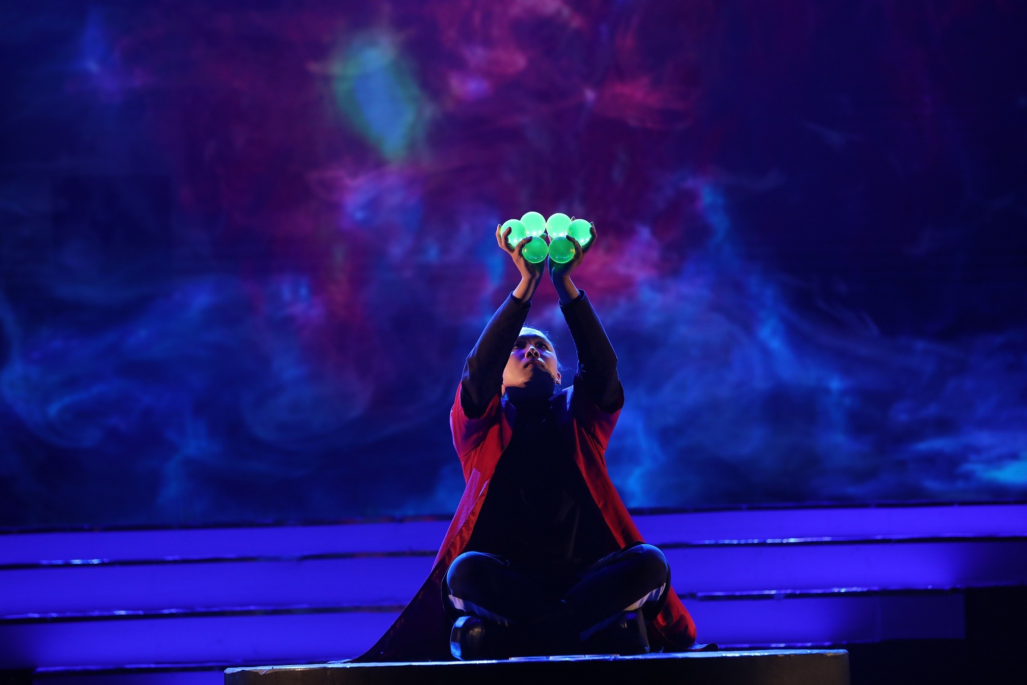 Với những quả bóng phát sáng, gậy, vòng xoay là “bạn đồng hành”, lần này Osama Halley tiếp nhận thử thách tăng số lượng bóng di chuyển trên bàn tay trên 5 quả từ phía ban giám khảo.