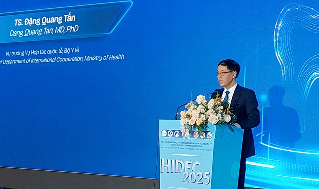 Phát biểu tại hội nghị, TS. Đặng Quang Tấn - Vụ trưởng Vụ Hợp tác quốc tế (Bộ Y tế) khẳng định HIDEC 2025 là sự kiện khoa học thường niên có ý nghĩa đặc biệt quan trọng của ngành Răng Hàm Mặt Việt Nam.