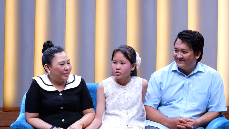 Cuối chương trình, MC Đại Nghĩa mời bé Hồng Thắm – con gái anh chị – lên sân khấu. Trước câu hỏi của Tiến sĩ Nguyễn Hữu Long về cảm xúc khi nghe câu chuyện của ba mẹ và ở trường có ai nói hay ăn hiếp gì không?, bé xúc động nói: “Bạn bè có chọc ghẹo con. Con thấy buồn và về sẽ kể với ba mẹ. Con thương ba mẹ nhiều lắm”. Bé cho biết mình thường phụ giúp việc nhà, nấu cơm, quét nhà và thậm chí học móc len từ mẹ.